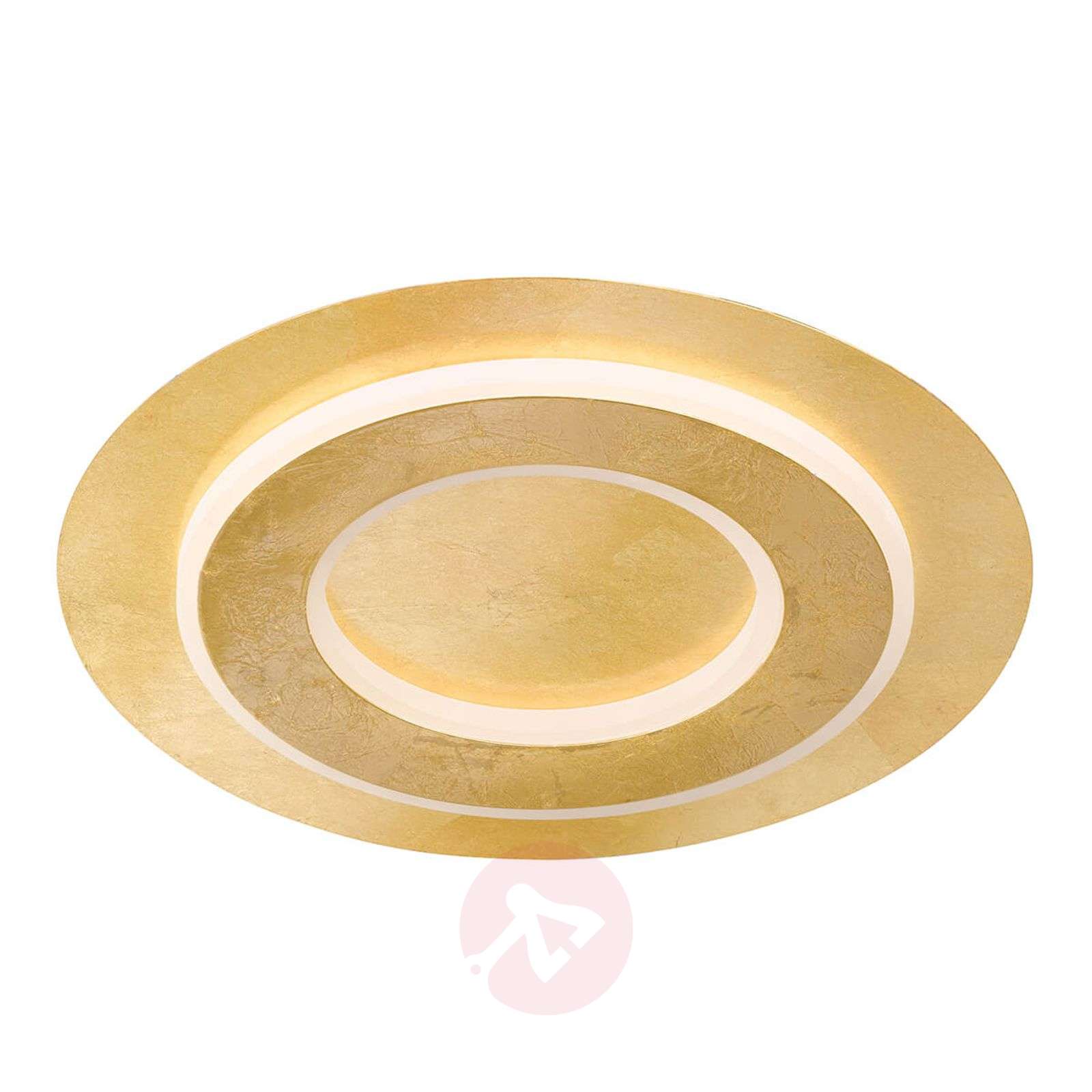 Granada - okrągła lampa sufitowa LED w złotym kolorze Ekskluzywna lampa sufitowa LED Granada w złotym kolorze doskonale sprawdzi się jako oświetlenie ogólne salonu, korytarza czy sypialni. Energooszczędne i trwałe diody LED zainstalowane w małym kloszu zapewniają przyjemne oświetlenie o barwie ciepłej bieli, której wrażenie ciepła potęguje złota powłoka. Nowoczesna lampa sufitowa LED Granada przykuwa uwagę stylowością nawet gdy nie świeci. Klasa efektywności energetycznej: A+