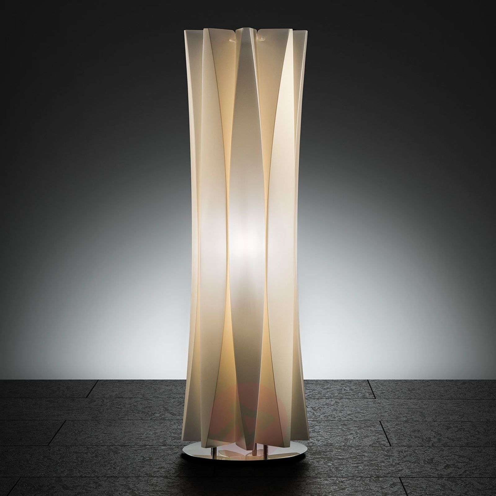 Piękna lampa stołowa BACH z atrakcyjnym fałdowaniami Piękna lampa stołowa BACH z wysokiej jakości tworzywa sztucznego jest ozdobiona eleganckimi fałdami. Forma przekonuje ponadczasową elegancją, dzięki czemu lampa odnajdzie się w każdym wnętrzu. Lampa dostępna jest w dwóch wielkościach i dwóch kolorach - białym i złotym. W serii znaleźć można także lampy stojące w różnych rozmiarach. Wizjonerskie lampy tworzone przez designerów we Włoszech - Slamp Włoska kuźnia designerów Slamp z siedzibą w Rzymie została założona na początku lat 90. XX wieku. przez Roberto Zilianiego. Ziliani już wcześniej działał twórczo zanim odkrył swoją pasję i możliwości, jaki daje światło. Spełniające najwyższe standardy materiały, wykonanie i jakość Marka Slamp kładzie szczególny nacisk na tworzenie nowych materiałów. Oprócz naturalnych i tradycyjnych surowców takich jak skóra, miedź, kryształ czy stal szlachetna firma Slamp wykorzystuje również własne opatentowane materiały jak Cristalflex®, Opalflex® i Lentiflex®. Dzięki nim możliwe jest stworzenie wyjątkowych efektów świetlnych. Na przykład materiał Lentiflex® służy jako woda, która w zależności od kąta patrzenia zmienia kolor. To właśnie własne materiały marki Slamp oraz powstałe z nich lampy są silnymi atutami firmy. Należą do nich również między innymi spory poziom innowacji, kreatywności oraz oryginalności, a także doskonałe wyczucie działania światła. Klasa efektywności energetycznej: A++