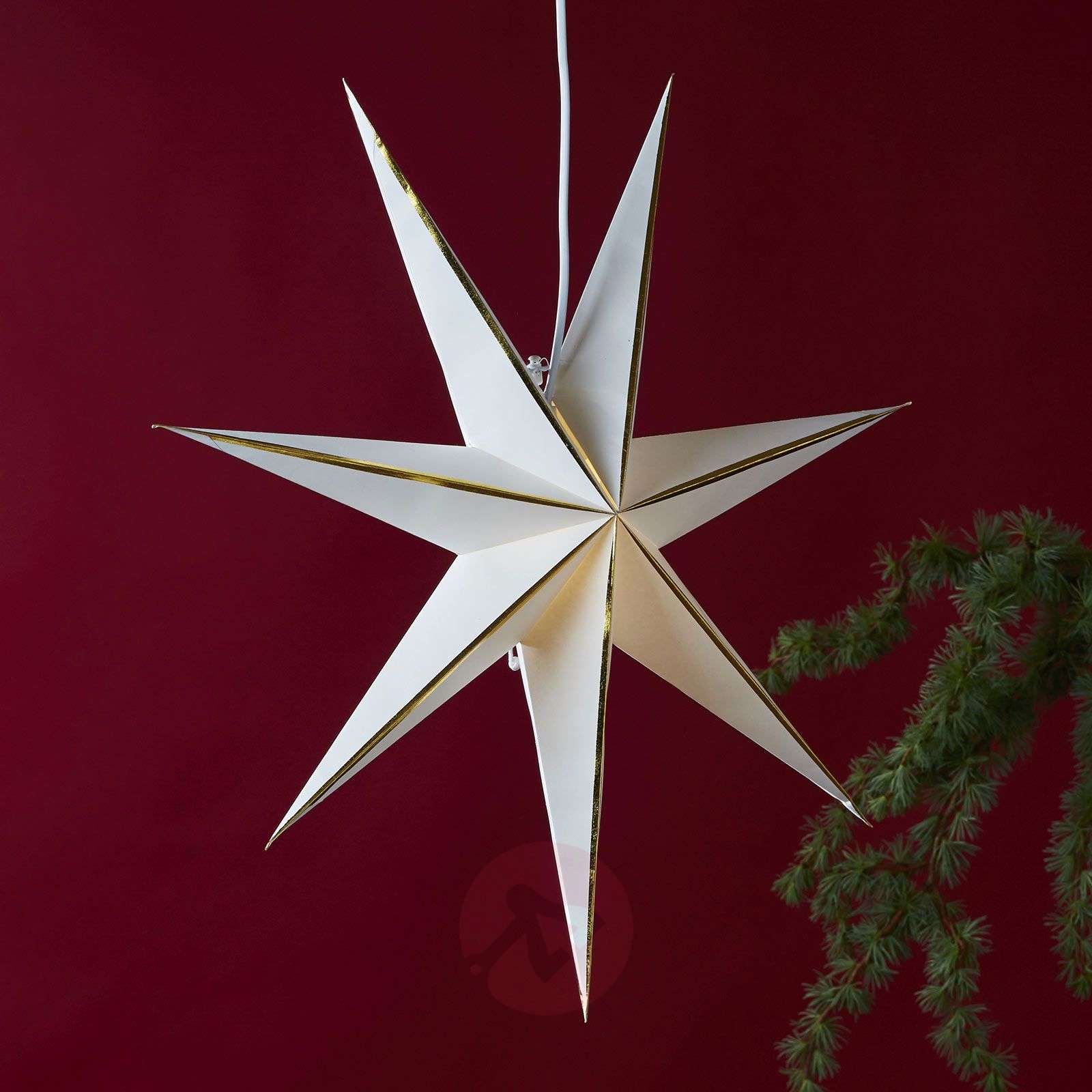 Papierowa gwiazda Lysa - uniwersalna dekoracja świąteczna Gwiazda dekoracyjna Lysa jest wykonana z białego papieru, środkowe krawędzie siedmiu ramion zostały podkreślone kolorowym paskiem. Na przykład nieoświetlona gwiazda może być umieszczona na półce lub zawieszona na sznurku przed oknem. Wskazówka: W przypadku wersji z oświetleniem kabel zasilający ze zintegrowaną oprawą E14 należy zamawiać oddzielnie w dziale „Akcesoria dodatkowe”.