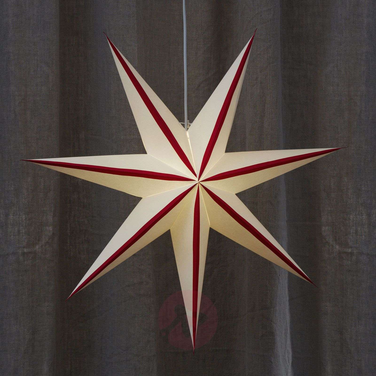 Gwiazda dekoracyjna Randi w kolorze białym - z kolorowymi paskami Siedmioramienna gwiazda dekoracyjna Randi może być używana we wszystkich pomieszczeniach jako dekoracja. Gwiazda wykonana z białego papieru z kolorowymi paskami może być ustawiona lub - po wyposażeniu w białą wstążkę - zawieszona. Randi nie jest wyposażona w oświetlenie. Kabel sieciowy z oprawą E14 można zamówić oddzielnie za pośrednictwem akcesoriów.