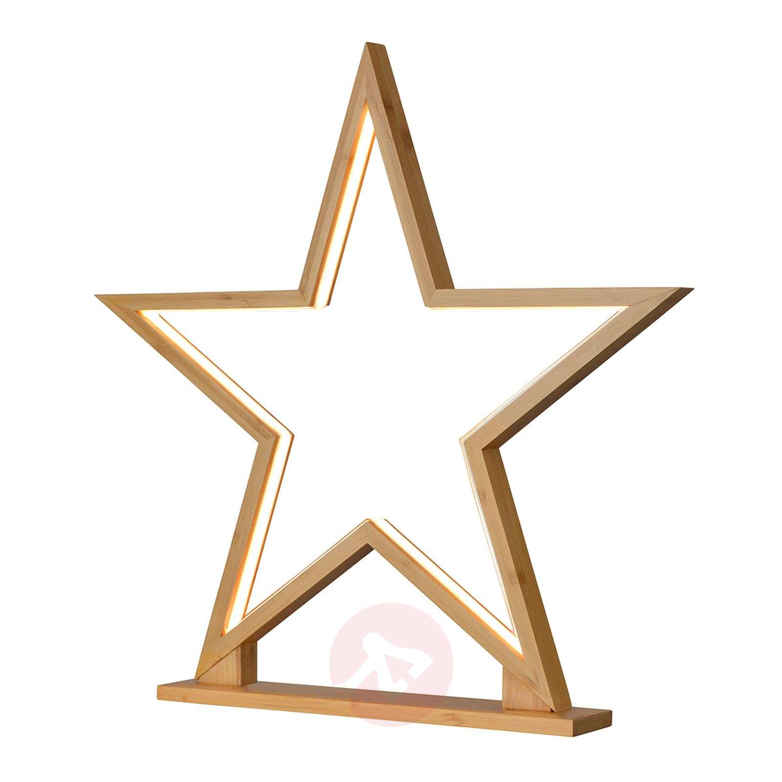 Pięcioramienna lampa dekoracyjna LED gwiazda Lucywood z drewna bambusowego Ten naturalnie zaprojektowany element dekoracyjny możemy szybko umieścić tam, gdzie potrzebna jest dekoracja przedświąteczna. Lucywood wyposażona jest w drewnianą podstawę, która zapewnia gwieździe niezbędną stabilność. Naturalny kolor bambusa pasuje do wszystkich barw wnętrza, dzięki czemu Lucywood można łączyć ze wszystkimi odcieniami elementów znajdujących się we wnętrzach. Wnętrze kształtu gwiazdy zdobią diody LED, które tworzą bardzo nastrojową atmosferę, emitując światło o barwie ciepłej bieli. Klasa efektywności energetycznej: A+