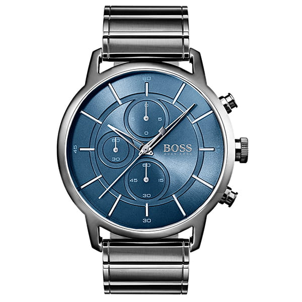 Hugo Boss Gents Architectural Chronograph Watch This ultra-modern watch is designed with a smart stainless-steel strap, analogue-quartz movement and contrast blue chronograph dial. Features and Specifications MOVEMENT: Analogue-Quartz WATER RESISTANCE: 3ATM Water Resistant up to 30m / 98ft Suitable for everyday wear and will withstand accidental splashes, but not swimming CASE: Stainless-steel CASE DIAMETER: 44mm STRAP: Stainless-steel FUNCTIONS: Chronograph WARRANTY: 6 months Contents 1 x Hugo Boss Gents Architectural Chronograph Watch 1 x Gift Box back to top