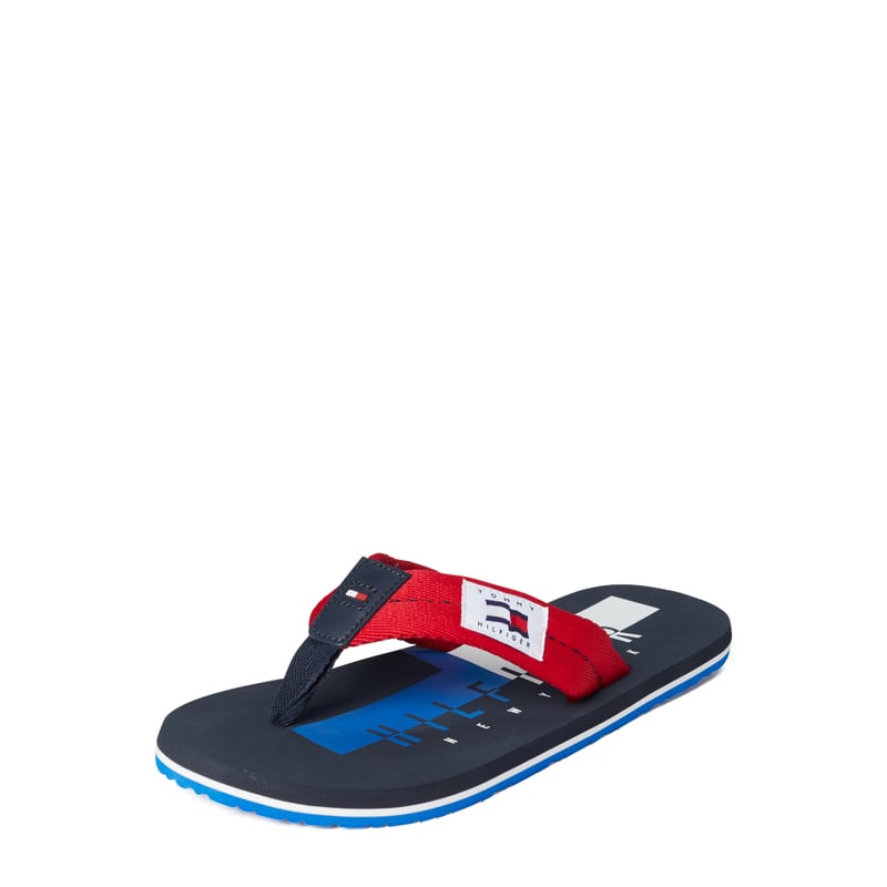 Japonki męskie Tommy Hilfiger, Wytrzymały materiał, Zaokrąglony czubek, Nadruk z logo na wkładce, Pasek z detalem z logo, Profilowana podeszwa