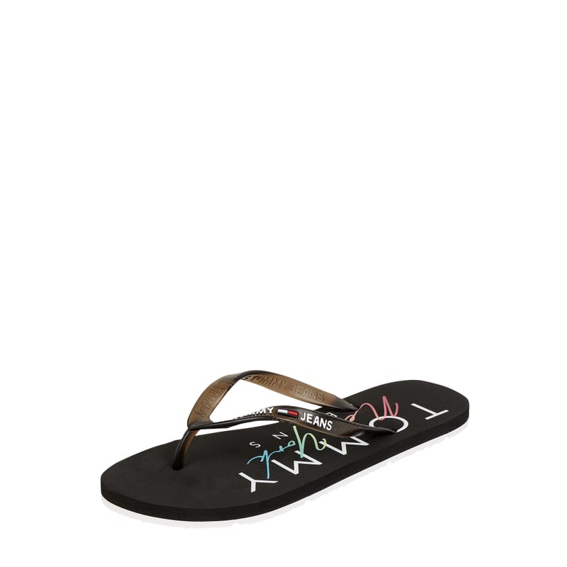 Japonki damskie Tommy Jeans, Wytrzymały materiał , Zaokrąglony kształt, Wąski pasek w kształcie litery T , Logo, Gumowa podeszwa, Wysokość podeszwy w rozmiarze 39: 1,5 cm