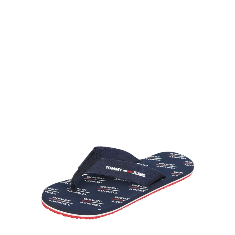 Japonki męskie Tommy Jeans , Guma , Zaokrąglony czubek , Wzór z logo, Szeroki pasek z tkaniny , Wysokość podeszwy: 1,5 cm