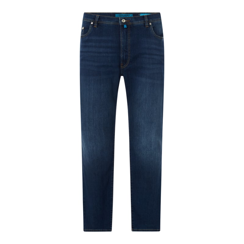 Jeansy PLUS SIZE męskie Pierre Cardin, Mieszanka bawełny z dodatkiem wiskozy i streczu , Krój regular fit, Zapięcie na guzik i zamek błyskawiczny , 5 kieszeni , Naszywka z logo , Długość wewnętrzna nogawki w rozmiarze 58: 84 cm, Szerokość w pasie w rozmiarze 58: 110 cm