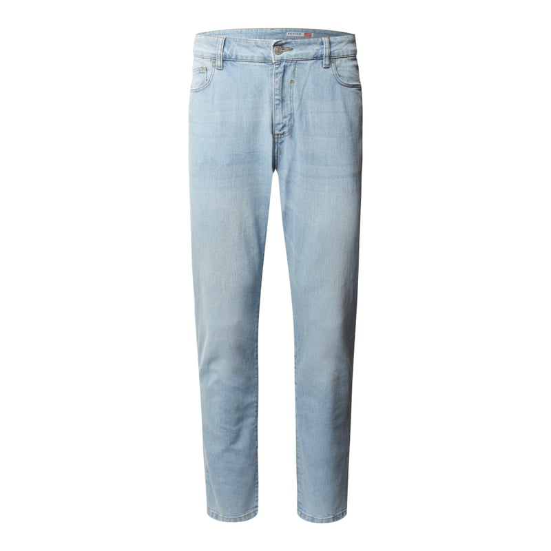 Jeansy męskie REVIEW , Mieszanka bawełny i elastanu , Krój skinny fit, Zapięcie na guzik i zamek błyskawiczny , 5 kieszeni , Naszywka z logo , Długość wewnętrzna nogawki w rozmiarze 32/32: 79 cm, Szerokość w pasie w rozmiarze 32/32: 80 cm