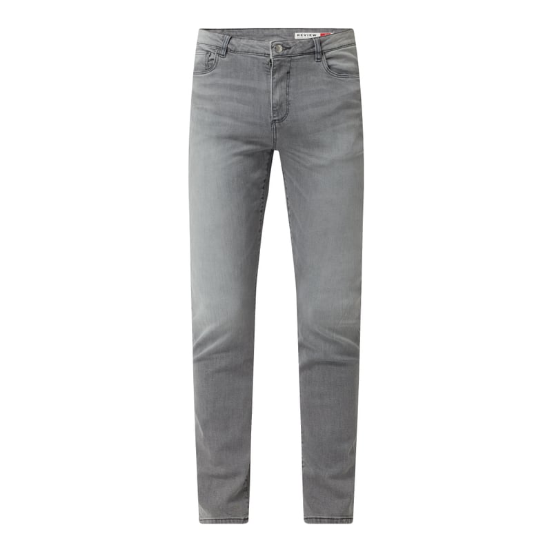 Jeansy męskie REVIEW , Mieszanka bawełny i elastanu , Krój skinny fit , Zapięcie na guzik i zamek błyskawiczny , 5 kieszeni , Naszywka z logo