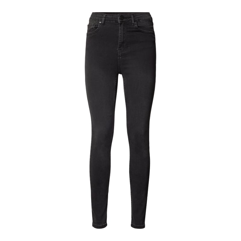 Jeansy damskie REVIEW, Mieszanka bawełny z dodatkiem streczu, Krój super skinny fit , Wysoki stan , Zapięcie na guzik i zamek błyskawiczny , 5 kieszeni, Naszywka z logo, Długość wewnętrzna nogawki w rozmiarze 27/long: 70 cm , Szerokość w pasie w rozmiarze 27/long: 64 cm