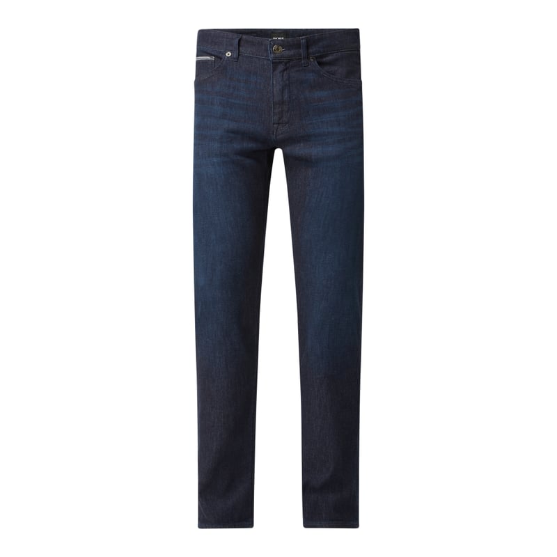 Jeansy męskie BOSS , Mieszanka bawełny z dodatkiem streczu , Krój regular fit, Zapięcie na guzik i zamek błyskawiczny , 5 kieszeni , Naszywka z logo , Długość wewnętrzna nogawki w rozmiarze 32/32: 80 cm, Szerokość w pasie w rozmiarze 32/32: 84 cm