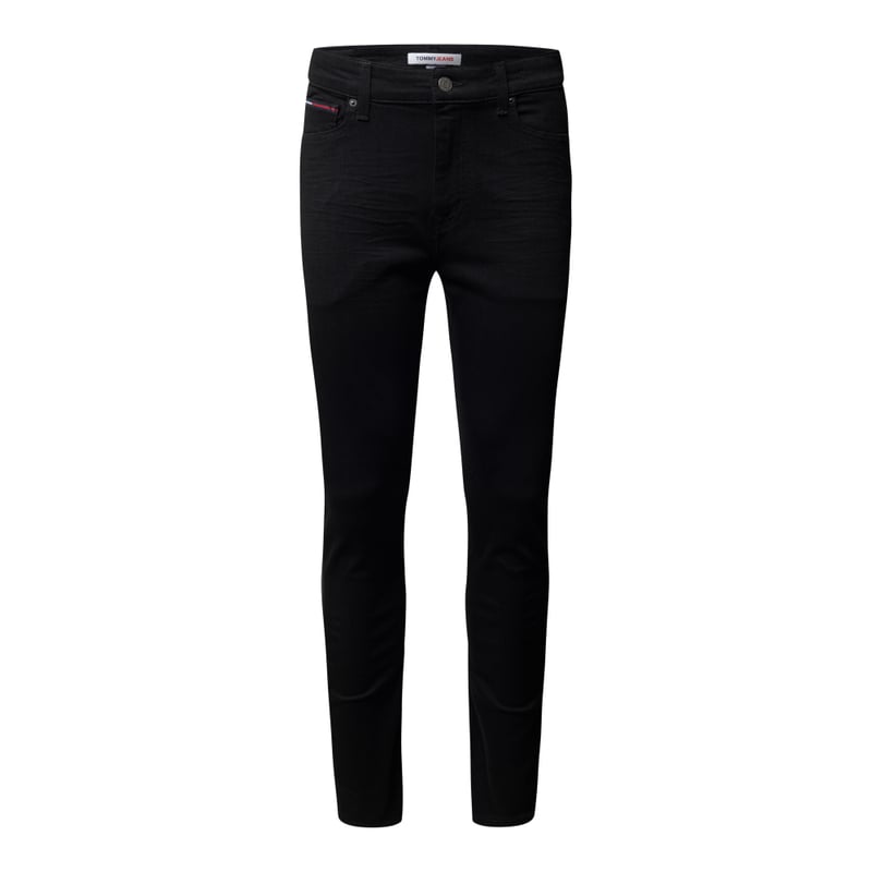 Jeansy męskie Tommy Jeans, Mieszanka bawełny z dodatkiem streczu, Krój skinny fit , Zapięcie na guzik i zamek błyskawiczny , 5 kieszeni, Naszywka z logo, Długość wewnętrzna nogawki w rozmiarze 32/34: 83 cm , Szerokość w pasie w rozmiarze 32/34: 83 cm