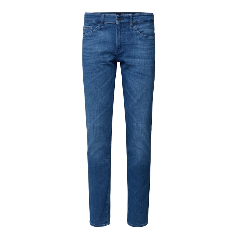 Jeansy męskie BOSS, Mieszanka bawełny z dodatkiem streczu, Krój slim fit, 5 kieszeni, Zapięcie na guzik i zamek błyskawiczny, Detale z logo, Szerokość w pasie w rozmiarze 32: 44 cm, Długość wewnętrzna nogawki w rozmiarze 32: 82 cm