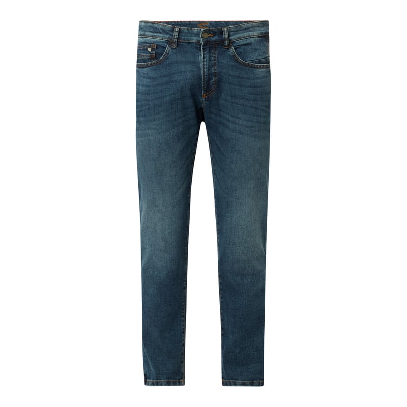 Jeansy męskie camel active, Mieszanka bawełny z dodatkiem streczu , Krój slim fit, Zapięcie na guzik i zamek błyskawiczny, 5 kieszeni , Naszywka z logo , Długość wewnętrzna nogawki w rozmiarze 32/32: 78 cm, Szerokość w pasie w rozmiarze 32/32: 82 cm