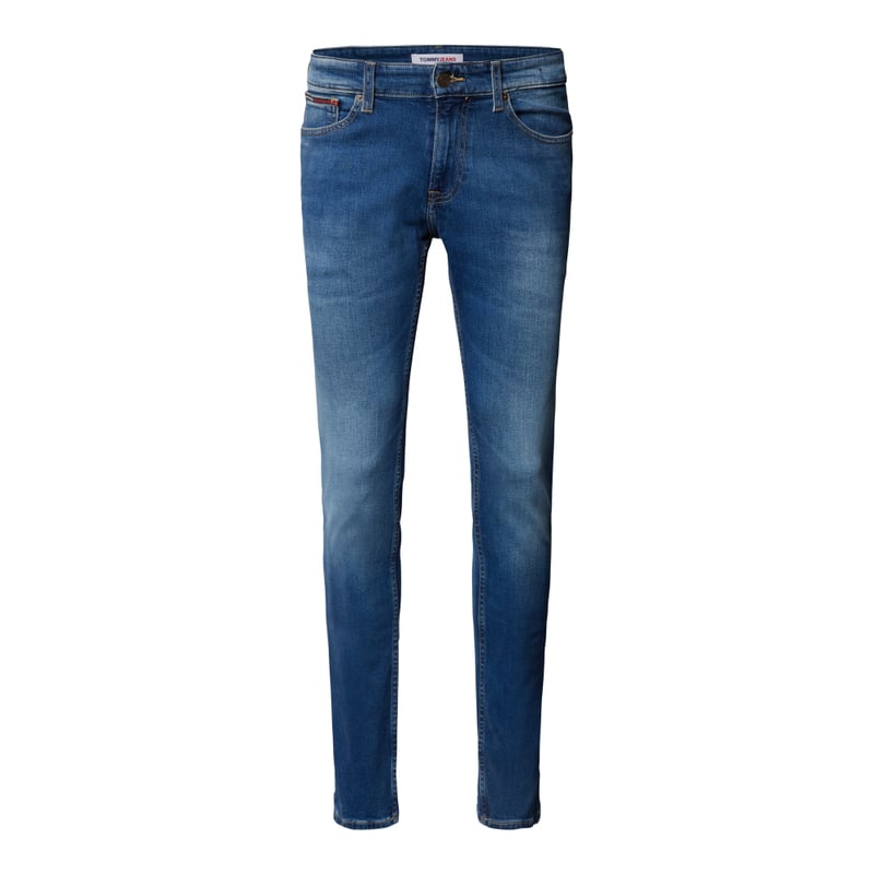 Jeansy męskie Tommy Jeans, Mieszanka bawełny i elastanu , Krój slim fit , Zapięcie na guzik i zamek błyskawiczny , Naszywka z logo, Długość wewnętrzna nogawki w rozmiarze 32/32: 79 cm , Szerokość w pasie w rozmiarze 32/32: 82 cm
