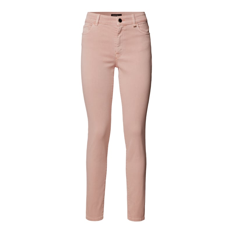 Jeansy damskie Marc Cain, Mieszanka bawełny z dodatkiem streczu, Krój slim fit, 5 kieszeni, Zapięcie na guzik i zamek błyskawiczny, Naszywka z logo ze skóry, Szerokość w pasie w rozmiarze 36: 38 cm, Długość wewnętrzna nogawki w rozmiarze 36: 75 cm