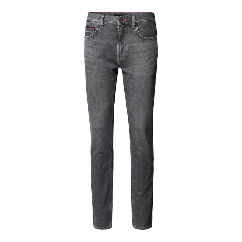 Jeansy męskie Tommy Hilfiger, Mieszanka bawełny z dodatkiem streczu, Krój straight fit, Model ‘Denton’, 5 kieszeni, Zapięcie na guzik i zamek błyskawiczny, Naszywka z logo ze skóry, Detale z logo, Szerokość w pasie w rozmiarze 32/32: 42 cm, Długość wewnętrzna nogawki w rozmiarze 32/32: 81 cm