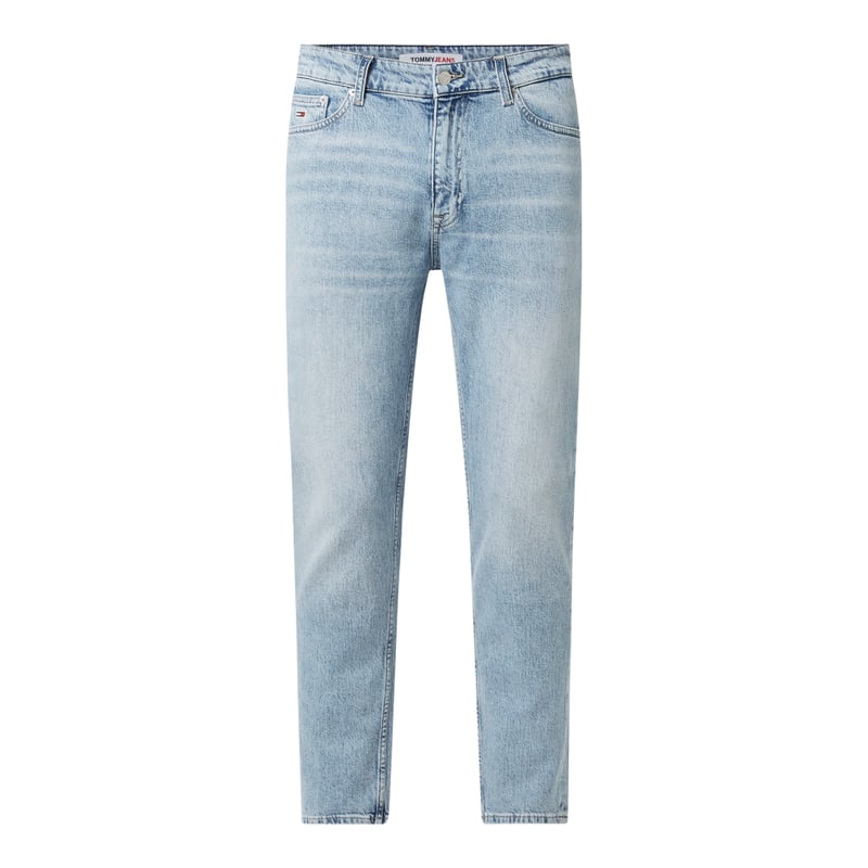 Jeansy męskie Tommy Jeans, Mieszanka bawełny i elastanu , Krój straight fit, Zapięcie na guzik i zamek błyskawiczny, 5 kieszeni , Detale z logo , Naszywka z logo , Długość wewnętrzna nogawki w rozmiarze 32/32: 73 cm, Szerokość w pasie w rozmiarze 32/32: 86 cm