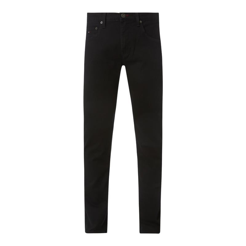 Jeansy męskie Tommy Hilfiger , Mieszanka bawełny i elastanu , Krój straight fit , Zapięcie na guzik i zamek błyskawiczny , 5 kieszeni , Wyhaftowane logo , Naszywka z logo w pasie