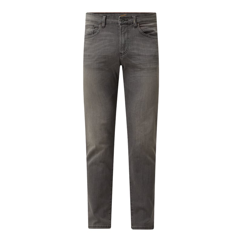 Jeansy męskie camel active, Mieszanka bawełny z dodatkiem streczu , Krój straight fit, Zapięcie na guzik i zamek błyskawiczny , 5 kieszeni , Naszywka z logo , Długość wewnętrzna nogawki w rozmiarze 32/32: 81 cm , Szerokość w pasie w rozmiarze 32/32: 84 cm
