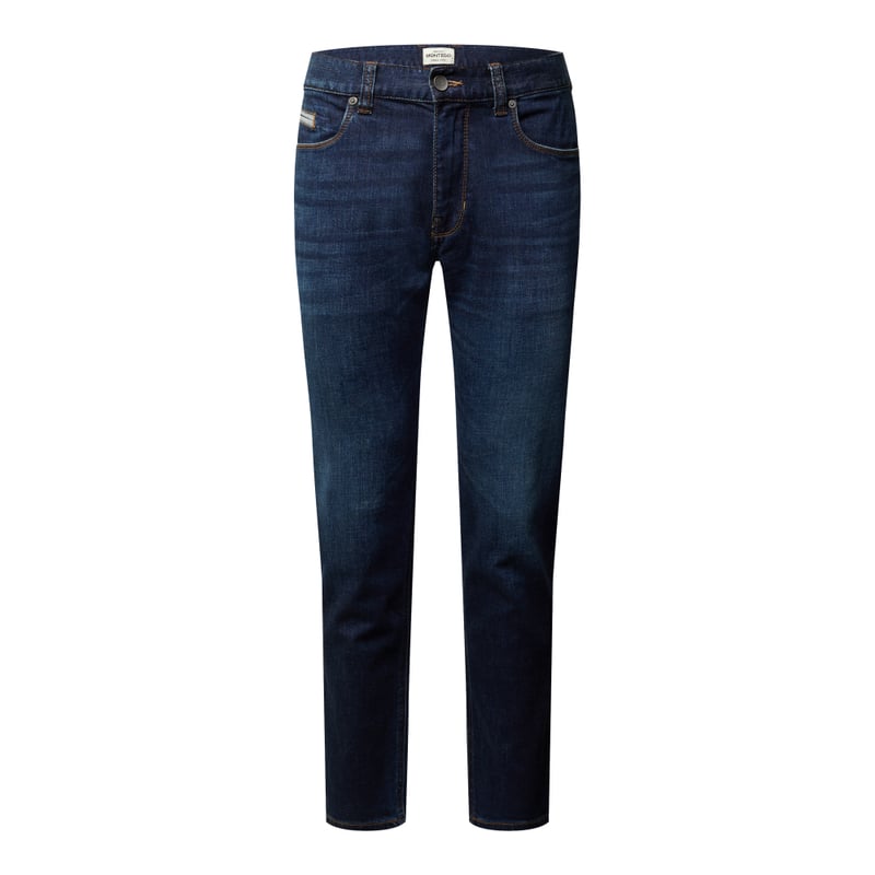 Jeansy męskie z 5 kieszeniami MONTEGO, Mieszanka bawełny i elastanu, Odcień Stone Washed , Krój regular fit, Zapięcie na guzik i zamek błyskawiczny, Kieszonka na monety z wypustką, Szwy w kontrastowym kolorze i ozdobne, Naszywka z logo, Długość wewnętrzna nogawki w rozmiarze 32/32: 81 cm, Szerokość w pasie w rozmiarze 32/32: 85 cm
