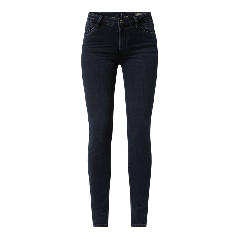 Jeansy damskie TOM TAILOR, Mieszanka bawełny z dodatkiem wiskozy i streczu , Krój skinny fit, Zapięcie na guzik i zamek błyskawiczny , 5 kieszeni , Szwy działowe , Długość wewnętrzna nogawki w rozmiarze 27/32: 76 cm, Szerokość w pasie w rozmiarze 27/32: 64 cm