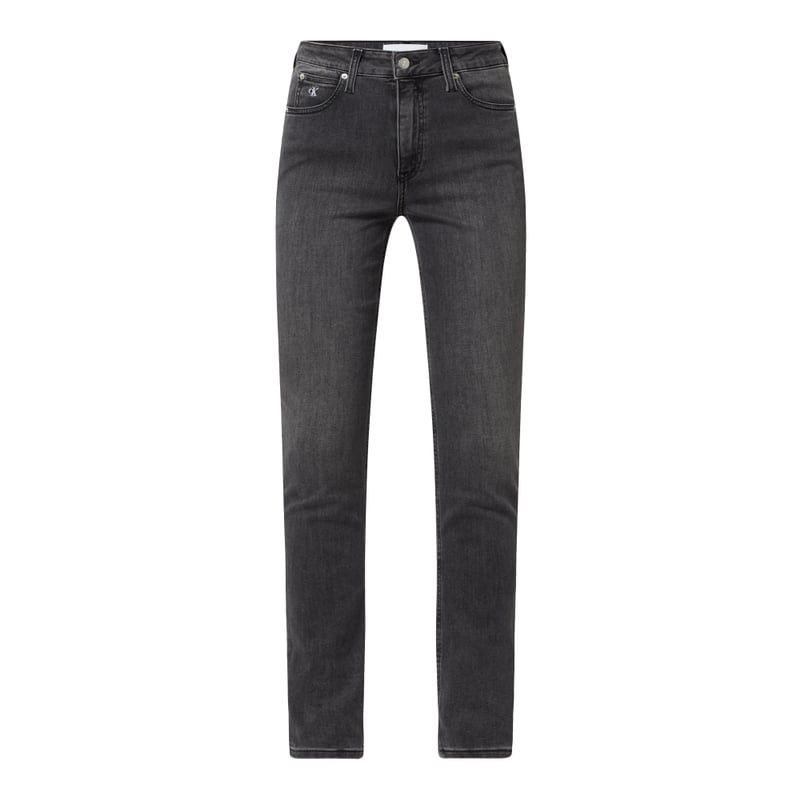 Jeansy damskie Calvin Klein Jeans, Mieszanka bawełny z dodatkiem streczu, Krój skinny fit, Wysoki stan, Zapięcie na guzik i zamek błyskawiczny, 5 kieszeni, Naszywka z logo w pasie, Długość wewnętrzna nogawki w rozmiarze 27/32: 78 cm, Szerokość w pasie w rozmiarze 27/32: 69 cm