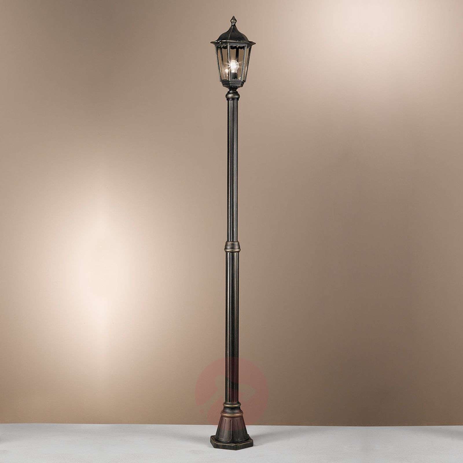 Latarnia Puchberg zapewni bezpieczne oświetlenie terenu wokół domu Lampy z serii Puchberg zapewniają nie tylko bezpieczne oświetlenie wieczorem, ale również piękny wygląd za dnia. Oprawa w błyszczącym czarno-złotym kolorze świetnie współgra ze szklanymi szybkami głowicy w kolorze przydymionym szarym. Klasa efektywności energetycznej: A++