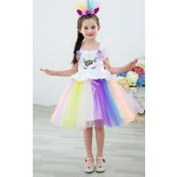 Jednorożec sukienka z tiulową spódnicą. Przebranie na bal karnawałowy dla dziewczynki.