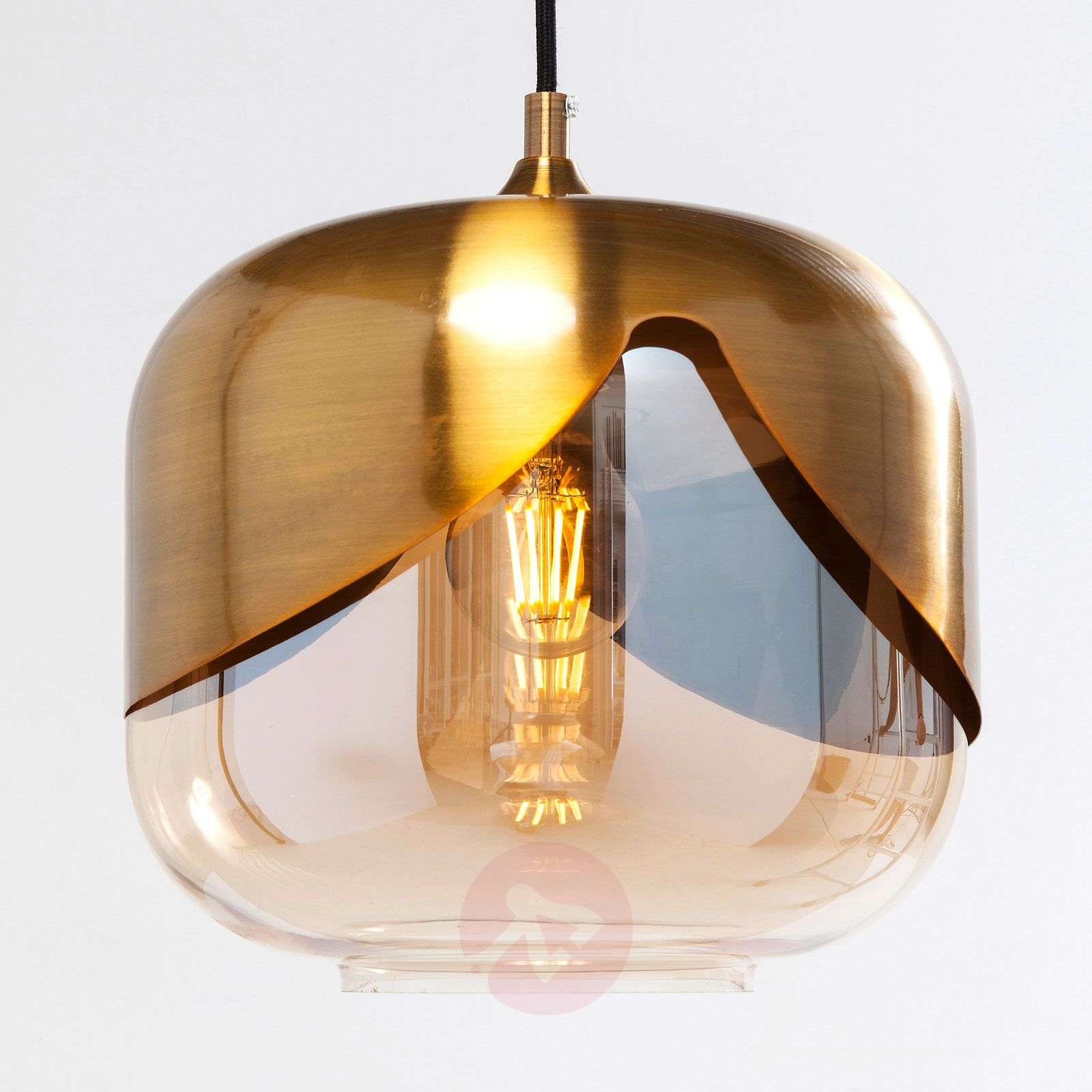 Lampa wisząca Golden Goblet w ciepłych tonacjach mosiądzu i bursztynu Ta lampa wisząca Golden Goblet firmy KARE wygląda elegancko, a jednocześnie zapewnia przyjemne oświetlenie dla relaksującej atmosfery. Podstawą jest połączenie stalowej nakładki z mosiężną powłoką z szybą w jasnobursztynowym odcieniu. Nadaje to światłu ciepłą nutę, która może być dodatkowo wzmocniona poprzez dobór odpowiednich żarówek. Klasa efektywności energetycznej: A++