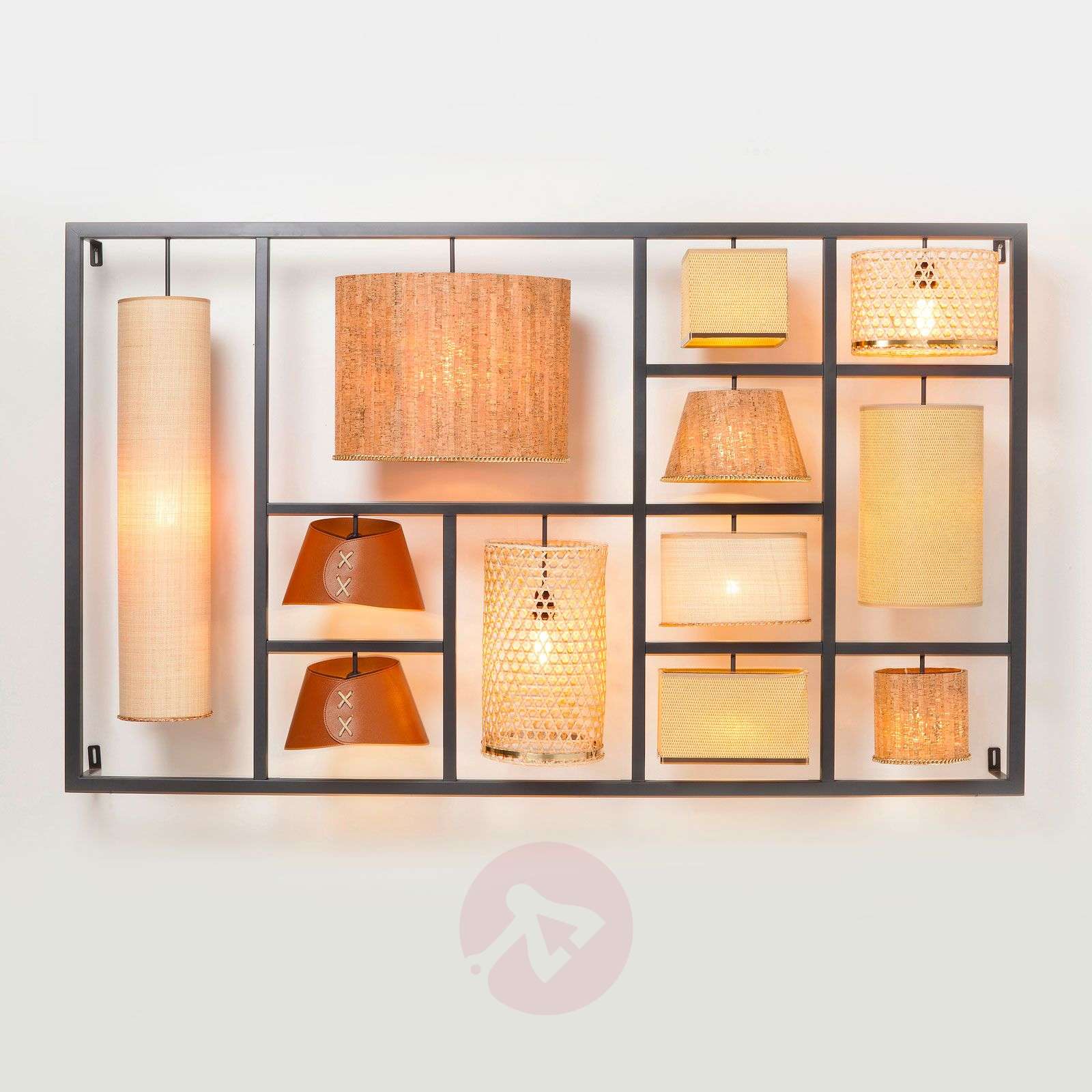 Parecchi Nature - lśniący obiekt designerski o naturalnym wyglądzie Seria Parecchi firmy KARE charakteryzuje się kombinacją różnorodnie zaprojektowanych kloszy, które należą do wspólnego stylu. Dwanaście kloszy lampy ściennej Parecchi Nature są utrzymane w odcieniach kremu, beżu i brązu, podczas gdy materiałami kloszy jest korek, skóra, bawełna i plecione drewno, zgodne z naturalnym motywem. Wszystkie klosze - których kształt sięga od cylindrów, poprzez ścięte stożki po prostopadłościany - mają własną część w stalowej ramie. Parecchi Nature to wysokiej jakości produkt przyciągający wzrok, który idealnie nadaje się do wyposażenia ekskluzywnych mieszkań oraz pomieszczeń publicznych. Lampa ścienna jest wyposażona w kabel z wtyczką oraz w wyłącznik. Klasa efektywności energetycznej: A++