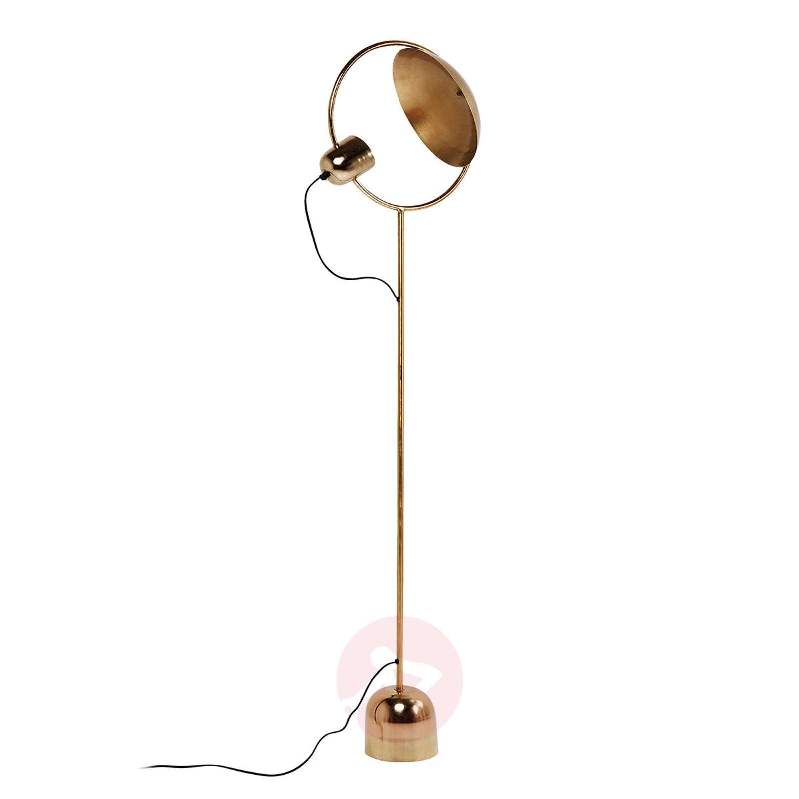 Efektownie odblaskowa lampa stojąca Reflector mosiądz Światło pośrednie tworzy szczególnie harmonijną atmosferę. Lampa stojąca Reflector mosiądz umiejętnie wpasowuje się w scenę i wytwarza piękne światło pośrednie. Złoty klosz tej lampy stojącej jest ułożony w taki sposób, że jest oświetlony przez naprzeciwległe źródło światła i równomiernie rozprasza światło w całym pomieszczeniu. Zgodnie z zasadą słońca i księżyca wytwarzana jest w ten sposób specyficzna atmosfera, która znakomicie się prezentuje przed ciemnymi ścianami. Nonszalancki element w biurze lub w mieszkaniu. Klasa efektywności energetycznej: A++