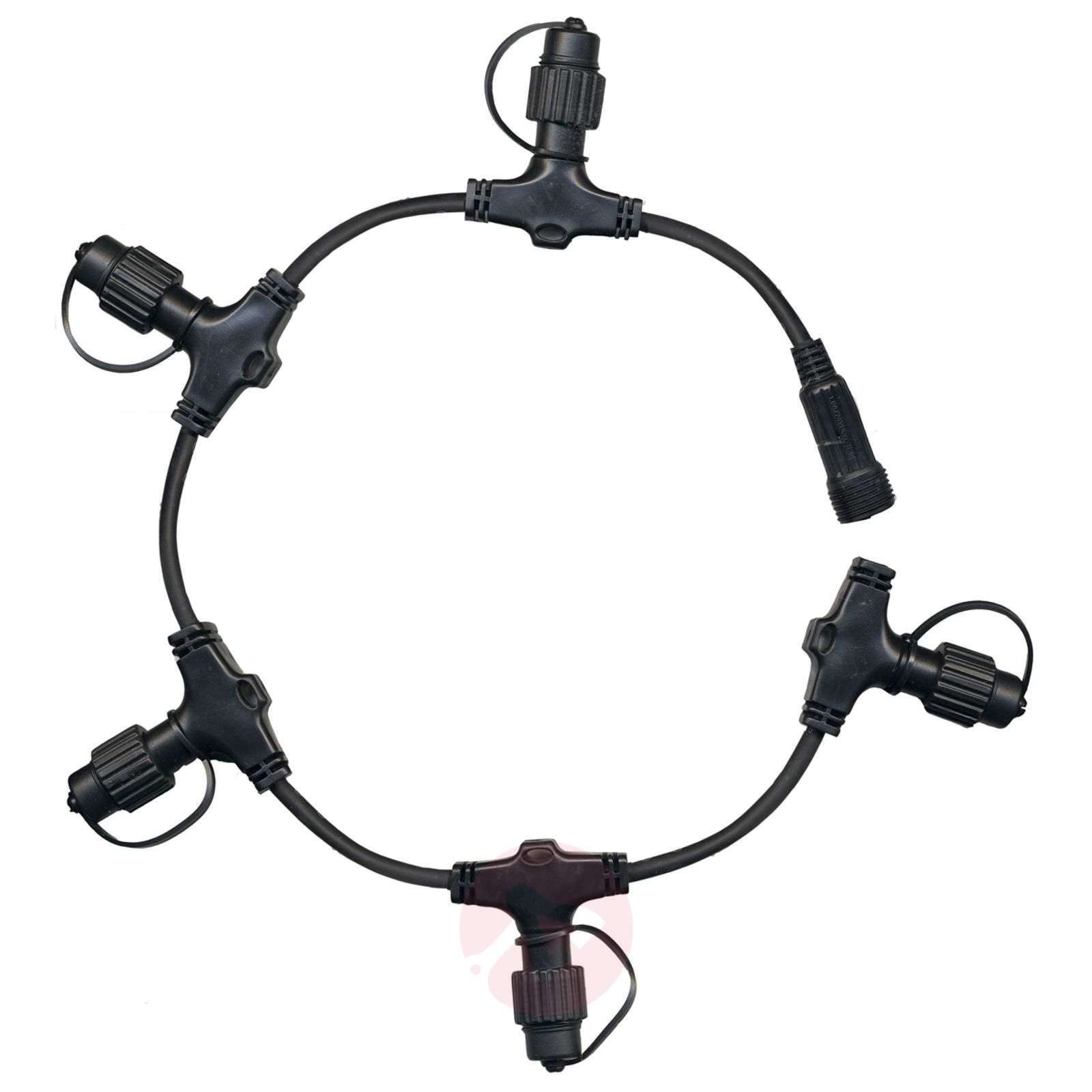 Dodatkowy kabel-pierścień z 5 przyłączami do systemu łańcuchów świetlnych 24. Dodatkowy kabel o okrągłym kształcie umożliwia rozszerzenie łańcucha systemu oświetlenia ogrodowego, okazyjnego i bożonarodzeniowego o pięć dodatkowych części. Dzięki prostemu systemowi, obsługa łańcucha jest bardzo wygodna.