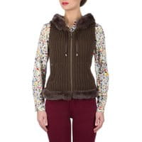 Casualowa kamizelka damska z interesującym futrzanym wykończeniem kaptura oraz dolnej części modelu. Doskonale zabezpiecza przed chłodem, a także stanowi bardzo stylowy element kobiecej stylizacji. Ściągacze umożliwiają regulację szerokości kamizelki pod szyją oraz nadają jej sportowego charakteru. wykonana z akrylu oraz futra królika; zapinana na suwak; posiada 2 otwarte kieszenie zewnętrzne; przybliżona długość całkowita wynosi 54 cm.