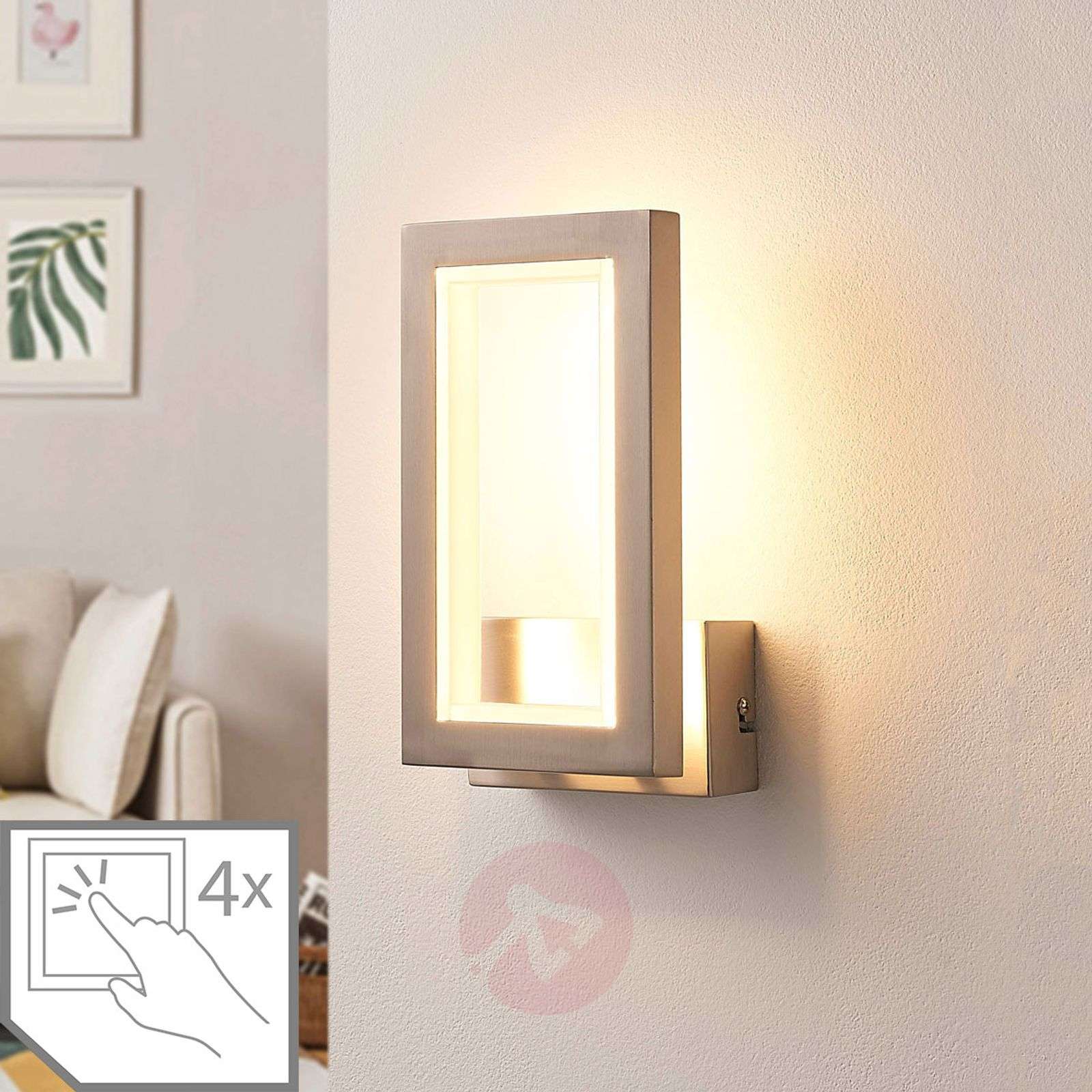 Kinkiet LED Heriba, ściemniany czterostopniowo, o kanciastych konturach Heriba ma matowe niklowane wykończenie, a po wewnętrznej stronie podstawy wyposażona została w diody LED, których ciepłobiałe światło subtelnie przenika przez osłony do otoczenia i nie oślepia obserwatora. W ten sposób w pomieszczeniu może powstać przytulna atmosfera, a możliwość czterostopniowej regulacji jasności kinkietu LED za pomocą przełącznika ściennego przydaje zalet lampie Heriba i zwiększa jej atrakcyjność. Ta lampa ścienna, wyposażona w nowoczesna technologie LED, mająca kanciaste kształty i minimalistyczny wygląd, idealnie nadaje się jako element uzupełniający aranżację nowoczesnych wnętrz, wkomponowujący się we współczesne style urządzania. Klasa efektywności energetycznej: A+