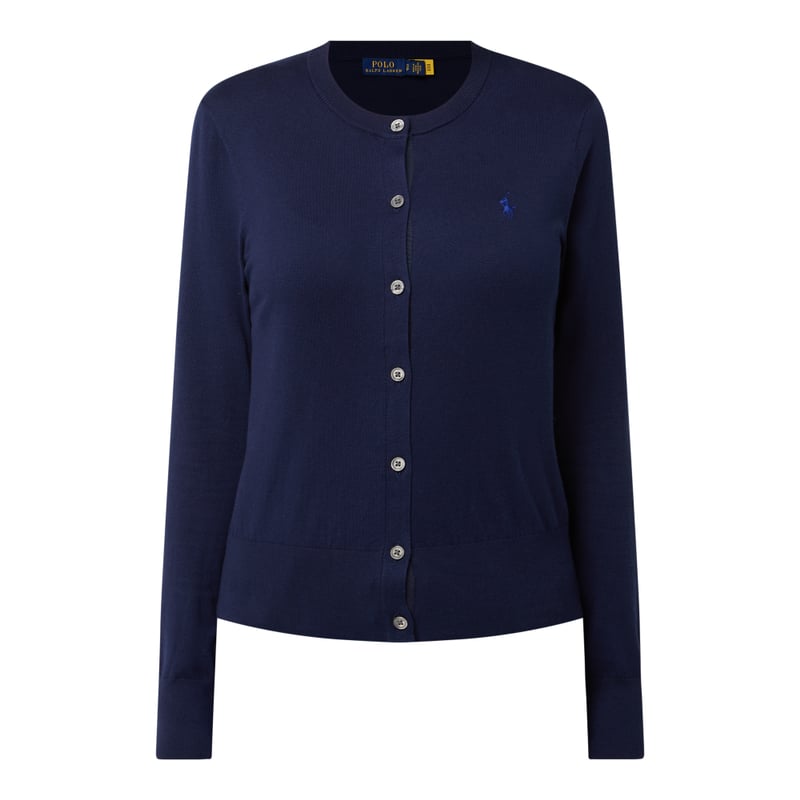 Kardigan damski Polo Ralph Lauren, Mieszanka bawełny z dodatkiem streczu , Prosty krój , Drobne oczka , Okrągły dekolt , Listwa guzikowa , Prążkowane ściągacze, Długość tyłu w rozmiarze S: 56 cm , Długość rękawa w rozmiarze S: 60 cm