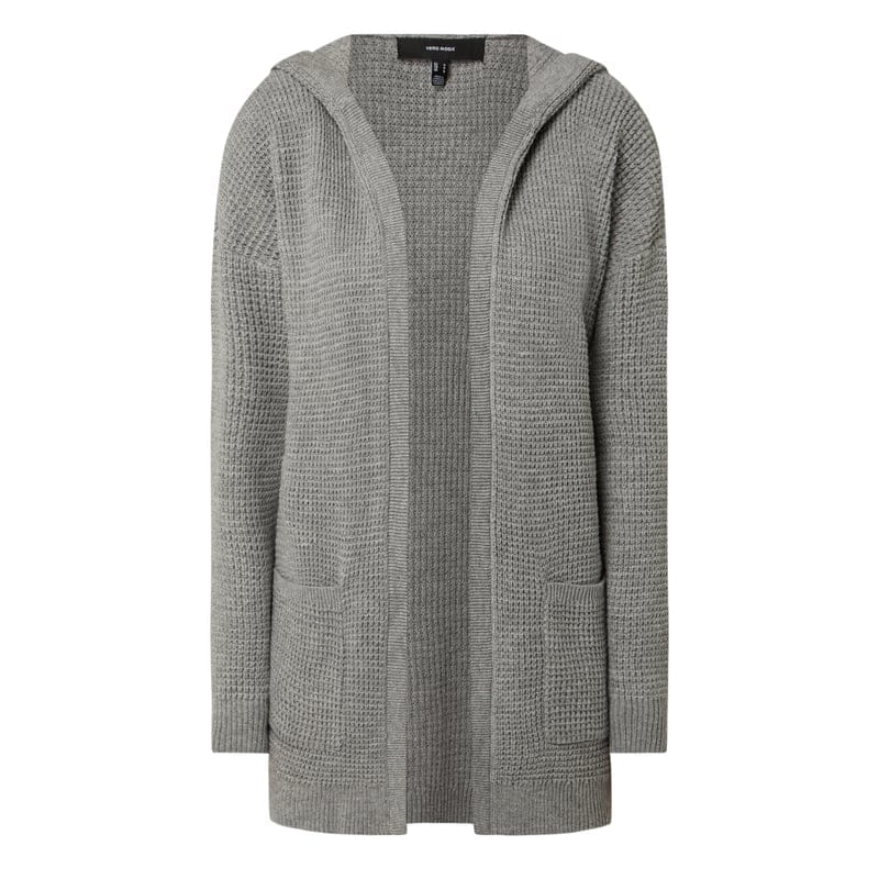 Kardigan damski VERO MODA, Mieszanka materiałów z poliestrem z recyklingu, Luźny krój, Kaptur, Przód bez zapięcia, Obniżone ramiona, Nakładane kieszenie, Prążkowane wykończenia, Długość tyłu w rozmiarze S: 73 cm