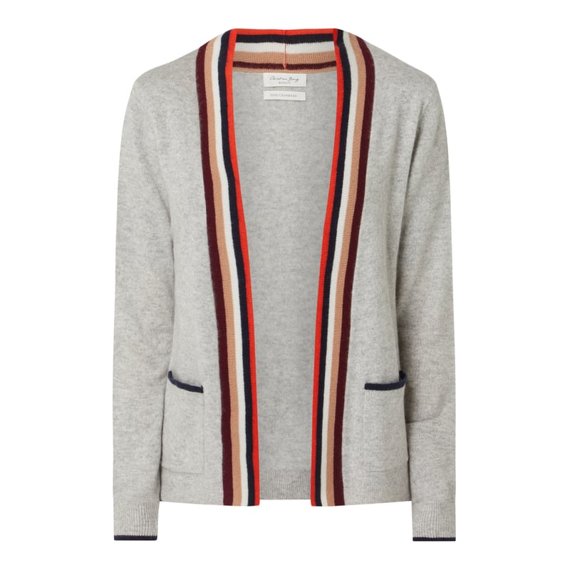 Kardigan damski Christian Berg Women, Czysty kaszmir , Luźny krój , Szalowy kołnierz z paskami w kontrastowym kolorze , Nakładane kieszenie , Długość tyłu w rozmiarze 36: 57 cm, Długość rękawa w rozmiarze 36: 62 cm