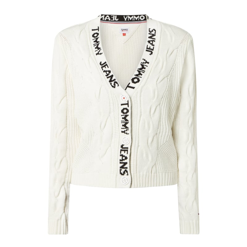 Kardigan damski Tommy Jeans , Mieszanka bawełny , Prosty krój , Ścieg warkoczowy , Dekolt w serek , Listwa guzikowa , Logo , Długość tyłu w rozmiarze S: 54 cm , Długość rękawa w rozmiarze S: 62 cm