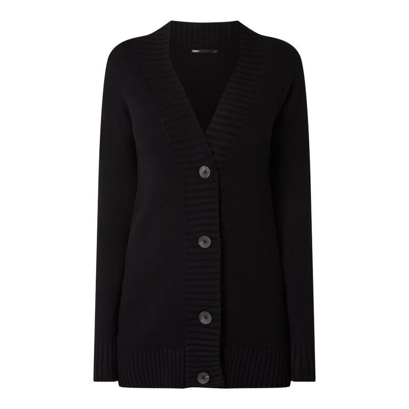 Kardigan damski ONLY, Mieszanka wiskozy, Prosty krój , Dekolt w serek, Listwa guzikowa, Obniżone ramiona , Prążkowane wykończenia, Długość tyłu w rozmiarze S: 79 cm