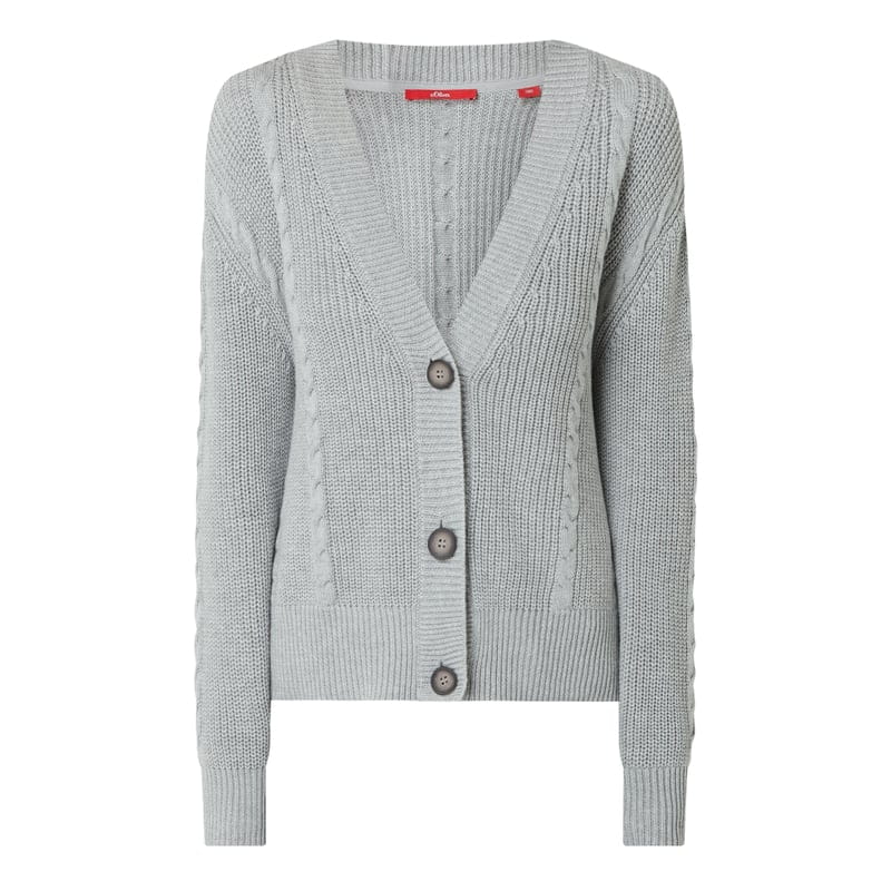 Kardigan damski s.Oliver RED LABEL, Mieszanka bawełny , Luźny krój , Prążkowana faktura , Ścieg warkoczowy , Dekolt w serek , Obniżone ramiona , Listwa guzikowa , Długość tyłu w rozmiarze 36: 56 cm
