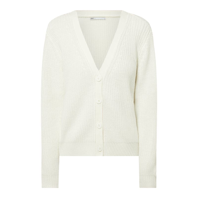 Kardigan damski ONLY , Mieszanka materiałów z poliestrem z recyklingu , Luźny krój, Prążkowana faktura , Dekolt w serek , Listwa guzikowa , Prążkowane wykończenia , Długość tyłu w rozmiarze S: 56 cm , Długość rękawa w rozmiarze S: 60 cm