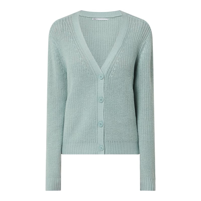 Kardigan damski ONLY , Mieszanka materiałów z poliestrem z recyklingu , Luźny krój, Prążkowana faktura , Dekolt w serek , Listwa guzikowa , Prążkowane wykończenia , Długość tyłu w rozmiarze S: 56 cm , Długość rękawa w rozmiarze S: 60 cm