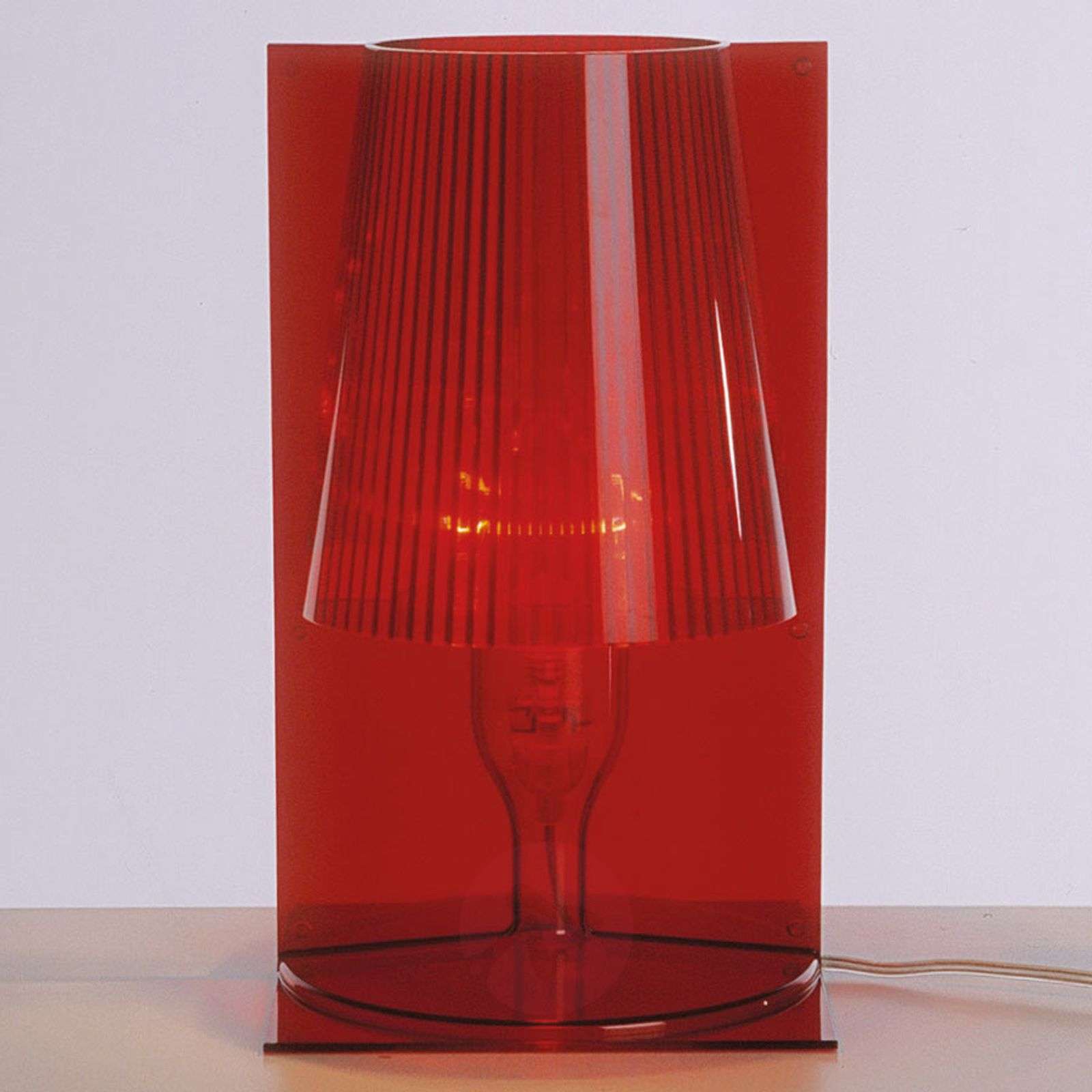 Rewolucyjne wzornictwo lampy - lampa stołowa Take Mała lampa stołowa Take jest dziełem włoskiego projektanta Ferruccio Lavianiego. Szczególną cechą wzornictwa jest to, że lampa stołowa składa się z dwóch lustrzanych połówek, które zostały połączone na środku prostokątną płytą. Wszystkie części są wykonane z poliwęglanu metodą formowania wtryskowego. Na pierwszy rzut oka wygląda ona jak typowa lampka nocna, która jednak jako „połowa lampki” została oddzielona od dwuwymiarowej płyty na środku. W wersji transparentnej klosz jest plisowany od wewnątrz, co po włączeniu światła tworzy specjalne refleksy świetlne i przytulną atmosferę. Mała lampa stołowa Take doskonale nadaje się jako lampka nocna w sypialni, jako kolorowe oświetlenie w pokoju dziecięcym lub jako atrakcyjny obiekt oświetleniowy w salonie. Wzornictwo jest nowoczesne, ale również młodzieżowe i minimalistyczne. Mały obiekt designerski jest również popularny jako prezent i mała pamiątka. Wspaniałe wzornictwo. Made in Italy. Klasa efektywności energetycznej: C