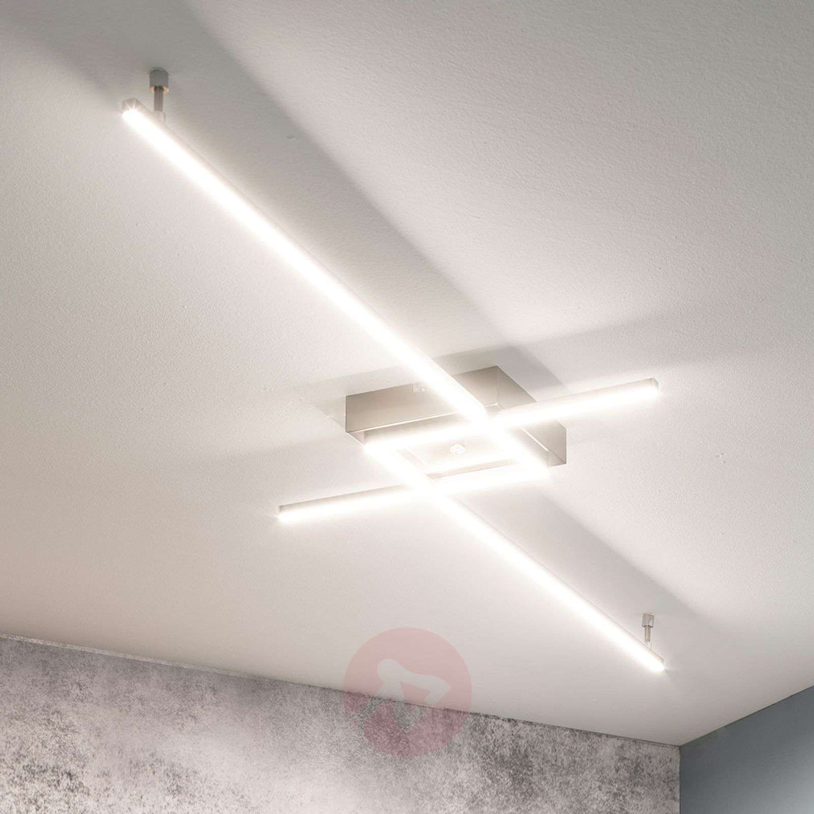 Lampa sufitowa LED Keki o ciekawym kształcie, ze srebrną podstawą i diodami LED, ściemnianymi pilotem Keki przekonuje bardzo nowoczesnym wyglądem. Dzieje się tak dzięki srebrnej podstawie ze stali szlachetnej, mającej prostoliniowe kształty, a także, oczywiście, dzięki bocznym rozpórkom, które podobnie jak element środkowy są wyposażone w diody LED. Osłona z satynowanego akrylu zapewnia równomierny rozkład światła, co sprawia, że atmosfera w pomieszczeniu staje się jeszcze bardziej przytulna. Takie oświetlenie równie dobrze sprawdzi się w kuchni, jak i w salonie, a w razie potrzeby można załączyć także funkcję ściemniania, którą można sterować za pomocą pilota na podczerwień, wchodzącego w skład zestawu. Pilot zdalnego sterowania pozwala również na załączanie i wyłączanie Keki bez korzystania z przełącznika. Klasa efektywności energetycznej: A+