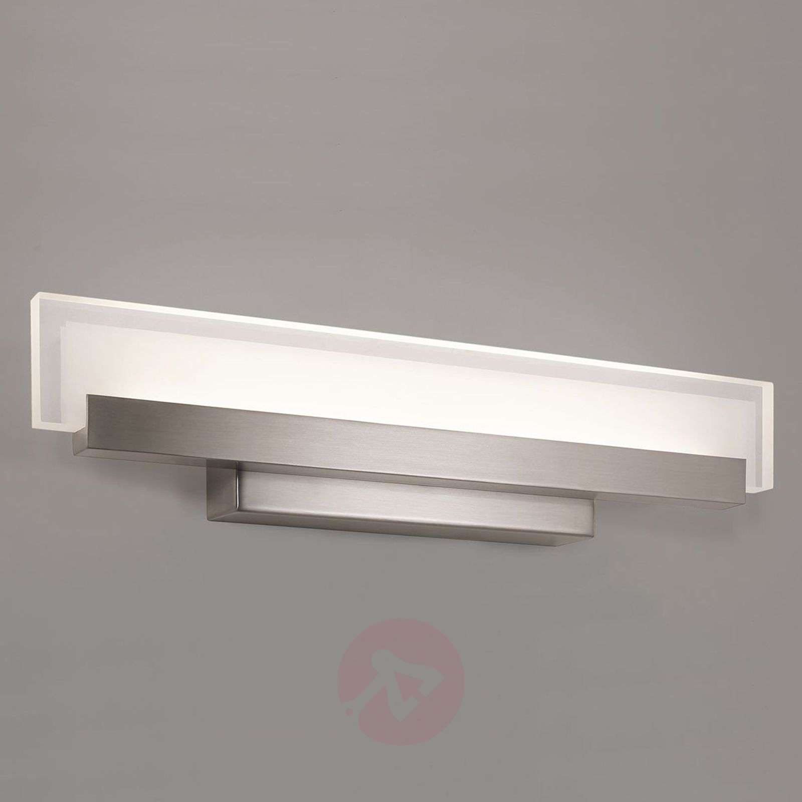 Satynowany kinkiet LED z diodami LED o barwie ciepłej bieli Kinkiet LED Electra to nowoczesna lampa ścienna ze światłem o barwie ciepłej bieli. Wąski, prostokątny uchwyt ścienny wykonany jest z satynowego niklu i podtrzymuje źródło światła LED, które świeci w górę. Opalowy metakrylan, otoczony przezroczystą krawędzią, pośrednio oświetla ścianę, tworząc przyjemną atmosferę. Klasa efektywności energetycznej: A+