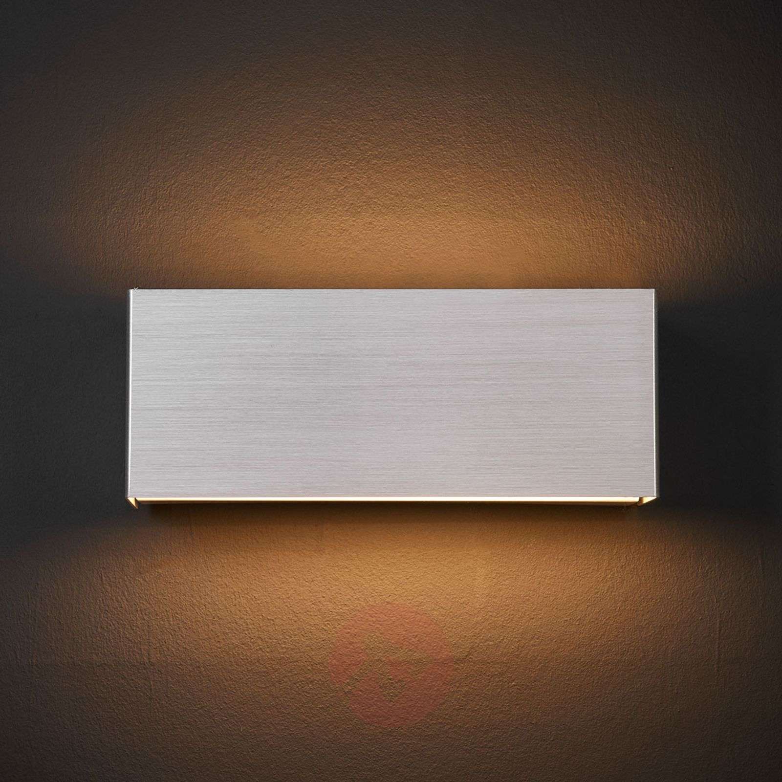 Nierzucająca się w oczy lampa ścienna LED Kimberly z aluminium Lampa ścienna LED Kimberly zapewnia przyjemne, nieoślepiające oświetlenie wnętrza i przytulną, domową atmosferę. Jej kanciasta oprawa została wykonana z aluminium, przy czym pozostawiono tu naturalne wykończenie, stawiając na nowoczesny wygląd. Znajdujące się wewnątrz diody LED gwarantują trwałe i energooszczędne oświetlenie pomieszczenia. Klasa efektywności energetycznej: A+
