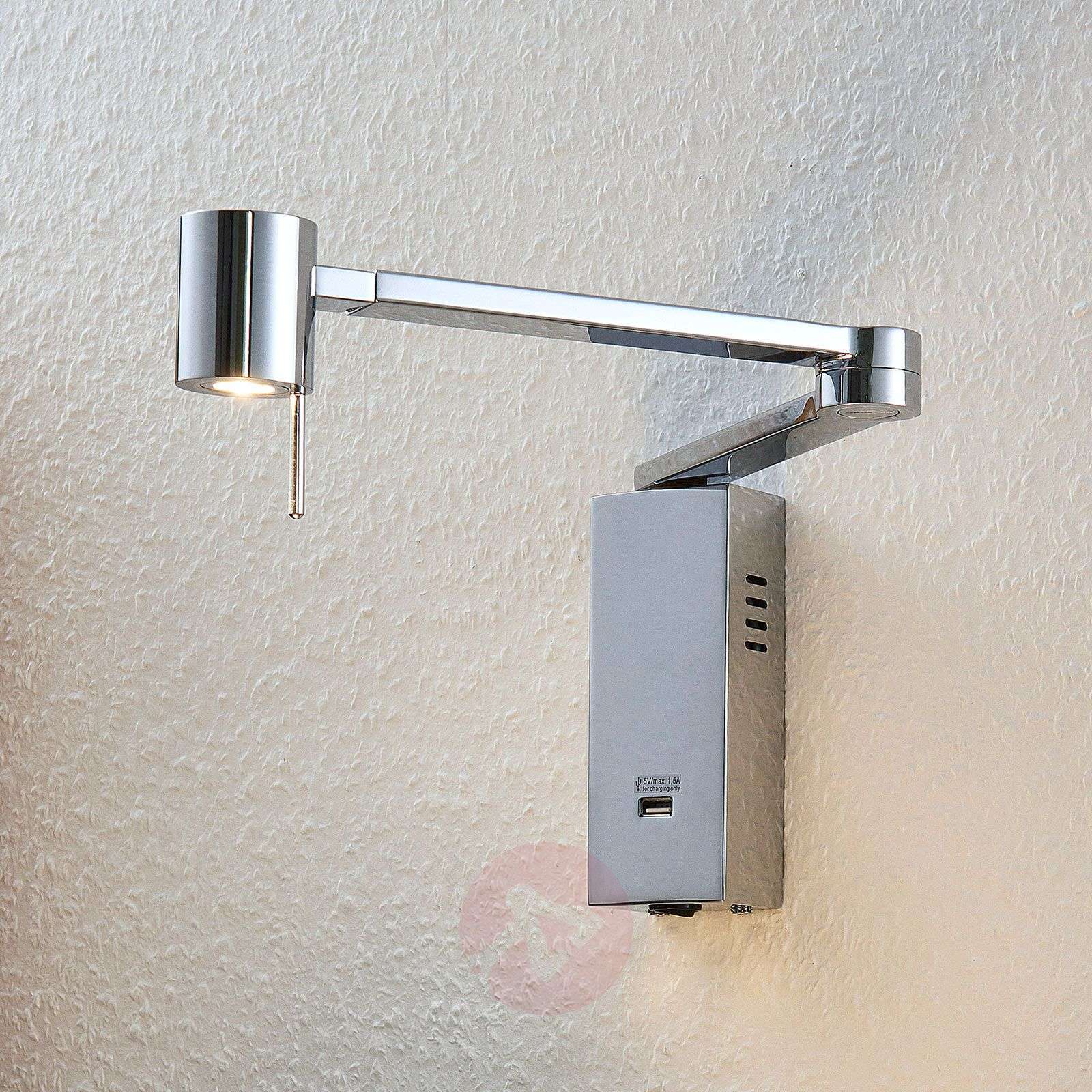 Nowoczesny kinkiet LED Merete z wysuwanym ramieniem Nowoczesna lampa ścienna LED Merete jest doskonale przystosowana do oświetlenia przy łóżku lub w kąciku do czytania i robótek ręcznych. Minimalistyczny i nowoczesny design oferuje wysoką funkcjonalność. Głowicę z diodami LED świecącymi w barwie ciepłej bieli można wygodnie wyciągnąć i rozłożyć, a w razie potrzeby zsunąć. Samo światło można przełączać za pomocą przycisku włączania/wyłączania na oprawie. Znajduje się on wokół dolnego końca oprawy. Najważniejszym punktem jest jednak dodatkowy port USB: tutaj można wygodnie podłączyć np. własny smartfon lub tablet do ładowania. Klasa efektywności energetycznej: A+