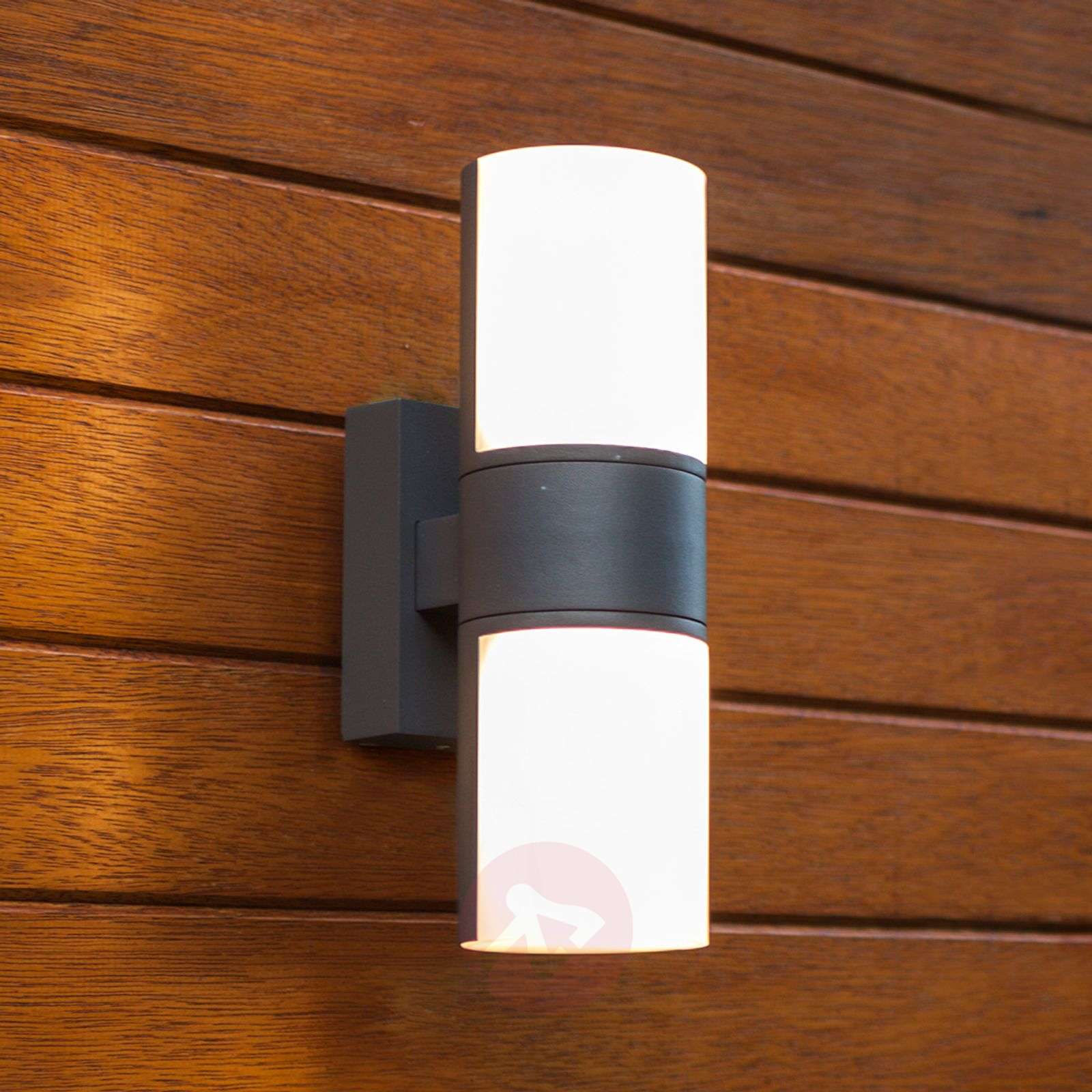Lampa zewnętrzna Cyra - nowoczesne oświetlenie z elastycznym światłem Idealne światło do zastosowań zewnętrznych: lampa ścienna Cyra doskonale nadaje się do oświetlania stref wejściowych, fasad domów i tarasów. Okrągły, wąski kształt jest szczególnie elegancki i nie narzuca się. Dwie jasne diody LED, umieszczone w dwóch niezależnych głowicach lampy, zapewniają niezbędne bezpieczeństwo. Można je wygodnie obracać o 350° w bok, co pozwala na indywidualne ustawienie światła. Klasa efektywności energetycznej: A+