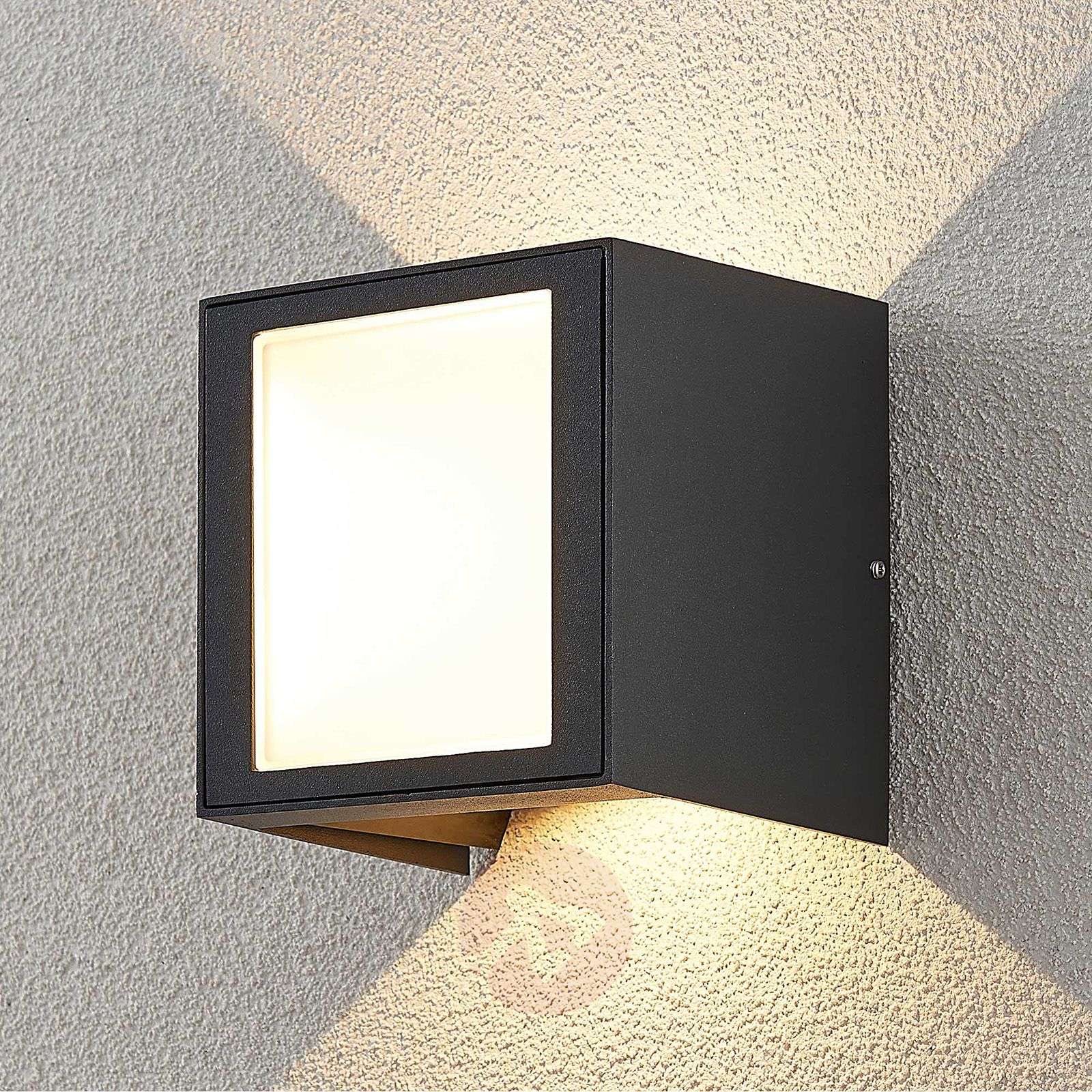 Przestawiany wylot światła – kinkiet zewnętrzny LED Alenda Nowoczesna lampa zewnętrzna Alenda składa się z kanciastej obudowy wykonanej z ciemnoszarego odlewu aluminium, w której znajduje się energooszczędna technologia LED. Ciepłobiałe światło diod LED będzie emitowane w górę i w dół, a dyfuzor z mlecznobiałym szkłem będzie również delikatnie kierował je ku przodowi. Rezultatem jest imponujący i praktyczny system oświetlenia zewnętrznego, który doskonale sprawdza się przy drzwiach wejściowych lub wzdłuż fasady domu. Emisja światła w górę i w dół jest również regulowana i może być ustawiana w sposób bardzo różny, niezależnie od tego, czy snop światła jest wąski, czy szeroki. Klasa efektywności energetycznej: A+