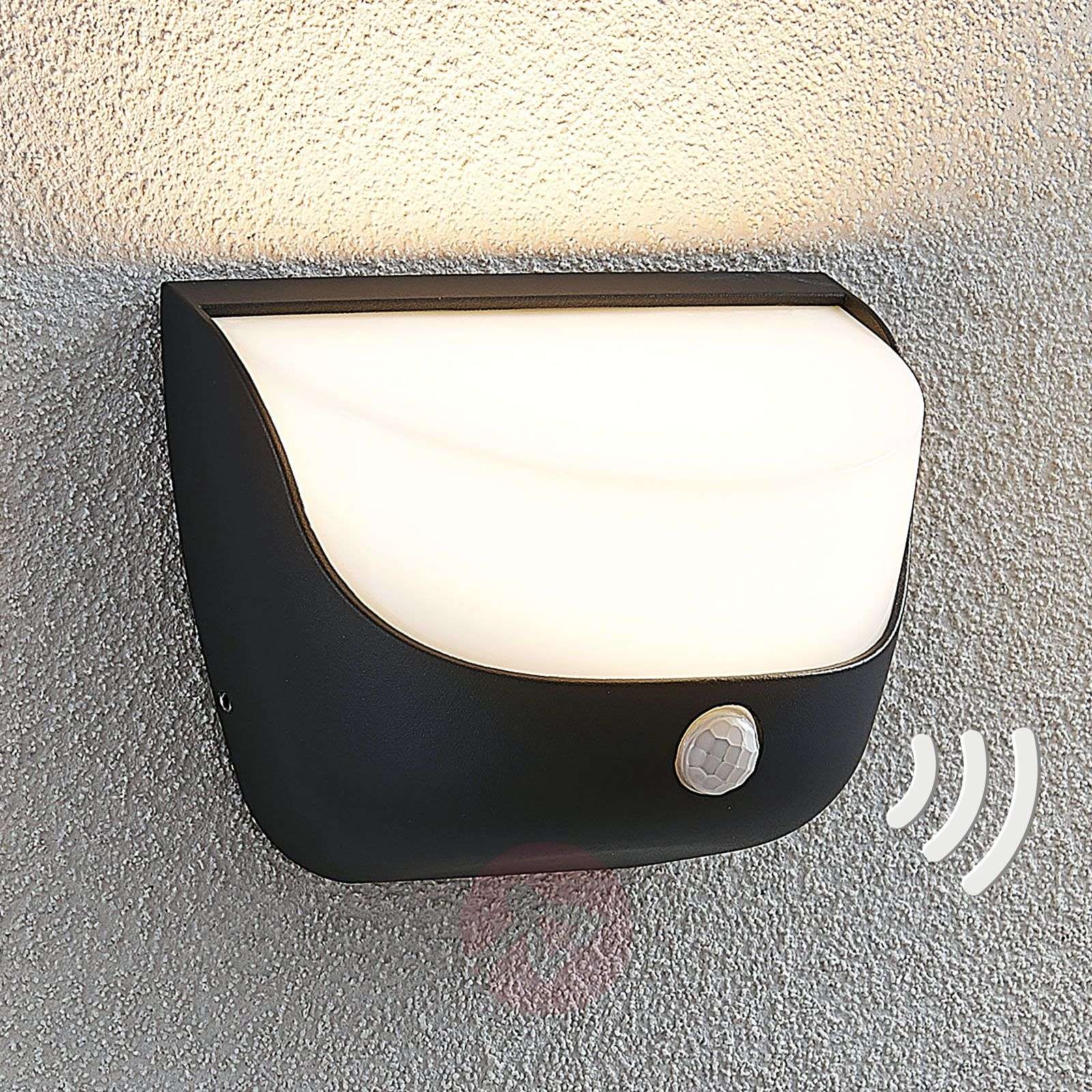 Kinkiet zewnętrzny LED Aremia z wbudowanym czujnikiem Kinkiet zewnętrzny LED Aremia ma zaokrągloną obudowę, przy czym korpus lampy wykonano z ciemnoszarego aluminium, a wkładkę dyfuzora – z białego opalowego plastiku. Sprawia to, że światło jest delikatne i rozchodzi się równomiernie. Na podstawie znajduje się czujnik ruchu, który sprawia, że lampa może się sama załączyć, gdy czujnik wykryje ruch w odległości 4-6 metrów. Kąt detekcji ruchu wynosi 100 stopni, a czas świecenia lampy można ustawiać w zakresie od 5 sekund do 6 minut. Klasa efektywności energetycznej: A+
